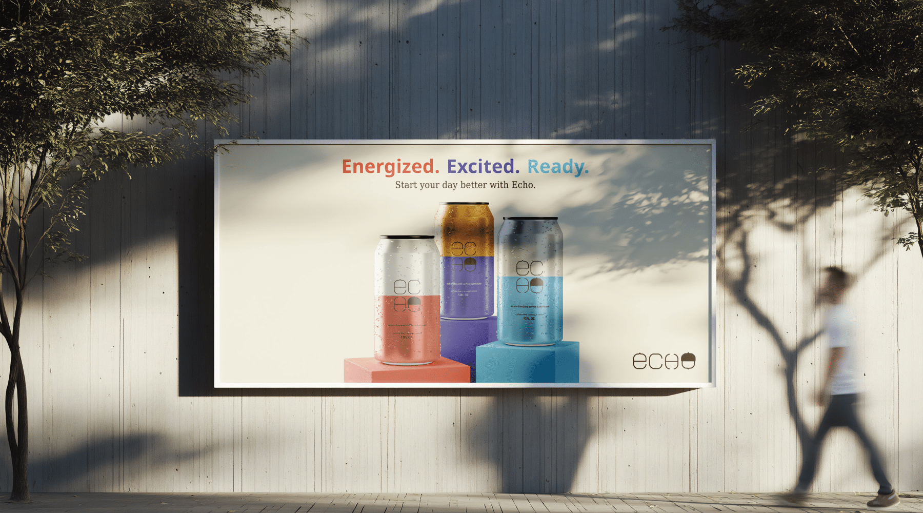 Echo is a fictional food brand marketed towards young working professionals and college students. Its goal is to promote healthy and nutritional acorn-based products which serve as alternatives to on-the-go snacks and energy drinks.